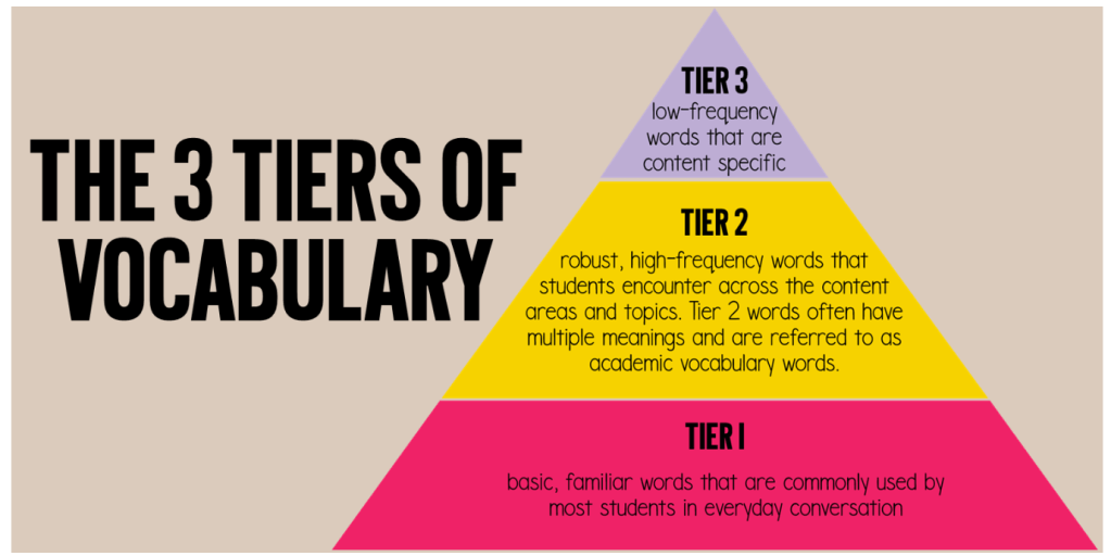 Miss DeCarbo. (2021). The 3 tiers of vocabulary for classroom instruction. https://www.missdecarbo.com/three-tiers-of-vocabulary-instruction/