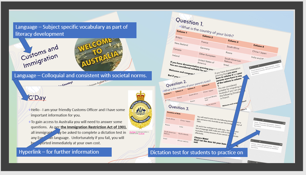 The ability to process information is known as cognitive load. Mayer and Moreno (2005) point out that cognitive overload occurs the amount of information received supersedes the brain’s processing capacity and any excess of stimuli can lead to diminished transfer of knowledge and reduced learning outcomes (CESE, 2017, p.3). Cognitive load is minimised when skeuomorphic features are curtailed, modalities are complementary and when students have appropriate digital literacy skills (Ibrahim, 2012; Mangen et al., 2013). Other factors that increase cognitive load are visual permanence, layout, colour scheme, length of digital text and an appropriate level of content (Mayer & Moreno, 2005; Mangen et al., 2013). The review of my own DST shows how I attempted to meet the needs of my students.