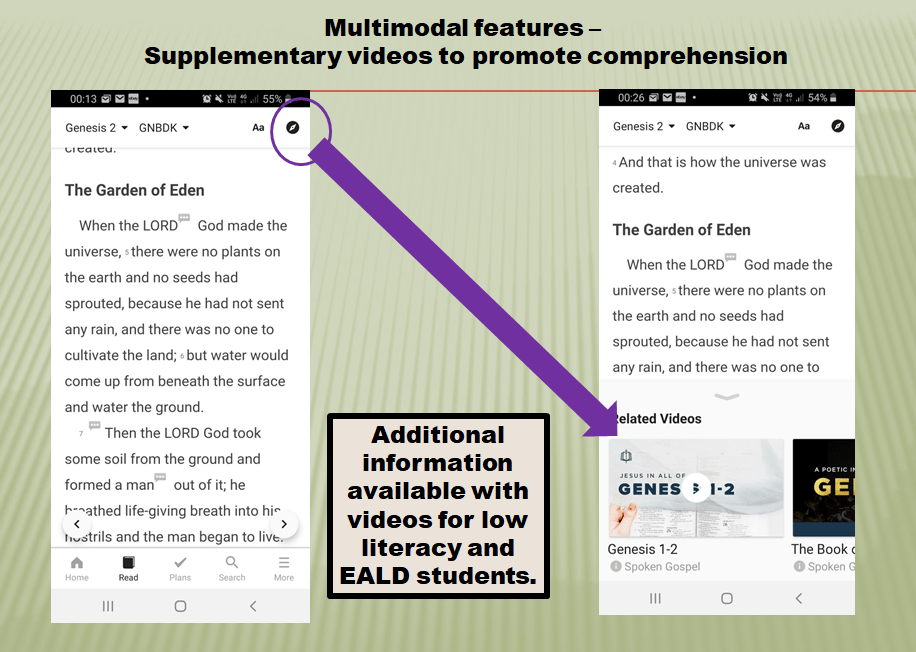 Digital storytelling (DST) is the modern adaptation of the ancient art of storytelling, in which visual, audio and textual elements are interwoven together to convey information and develop critical thinking (Ciccorico, 2012; Ohler, 2013, p.94; Maneti, Lipscombe & Kervin, 2018). DST is also an effective conduit of knowledge, and traditions but its primary purpose is to develop language, literacy, and learning (Moran et al., 2020; Ross Johnston, 2014). From an education perspective, DST can improve multimodal literacies, digital competencies and critical thinking, as it requires the reader to interact with the content rather than just passively view it (Hashim & Vongkulluksn, 2018). The issue with utilising DST is that not all DL is transformative, and not all recipients possess the necessary skills to access and engage with the medium (Ross et al., 2017; Jeon, 2012). DST that have minimal gestural manipulation, contradictory modalities, poor layout, and a lack of visual permanence have lower comprehension compared to print texts (Lamb, 2011; Hashim & Vongkulluksn, 2018).